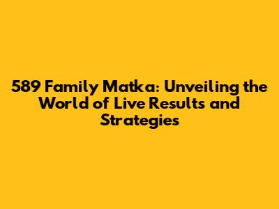 589 Family Matka: Your Ultimate Guide To Live Results And Strategies