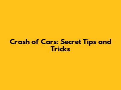Crash Of Cars: Secret Tips And Tricks