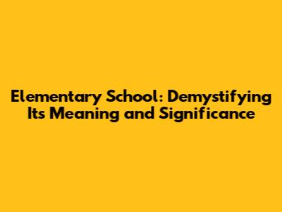 Elementary School: Understanding Its Meaning And Importance