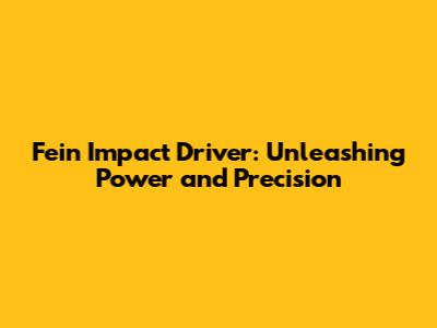 Fein Impact Driver: Power, Precision, And Performance