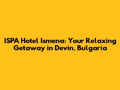 ISPA Hotel Ismena: Your Relaxing Getaway In Devin, Bulgaria