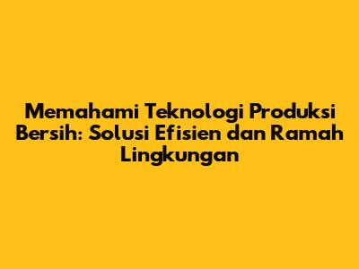 Apa Itu Teknologi Produksi Bersih?