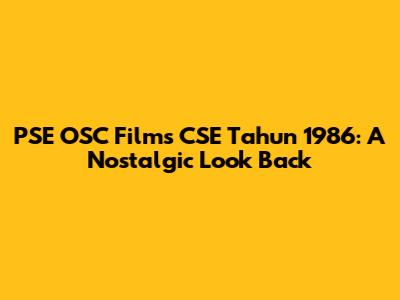 PSE OSC Films CSE: A Look Back At 1986