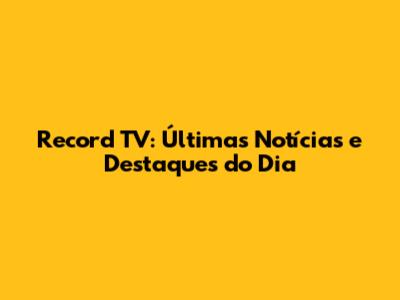 Record TV: Últimas Notícias E Destaques Do Dia